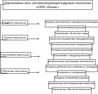Рисунок 2 – Система нормативных актов, регламентирующие кадровые технологии в ООО «Альянс»