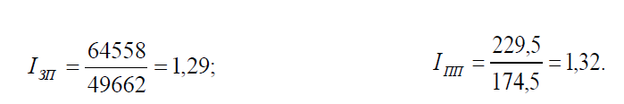 Изменение среднего заработка работающих характеризуется его индексом (IЗП), который определяется отношением средней зарплаты за отчетный период (ЗП1) к средней заработной плате предыдущего периода (ЗП0),по формуле: