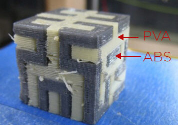 PVA-пластик (поливинилацетат). На рынке этот материал появился гораздо позже, чем PLA. В силу своей растворимости в воде, он отлично подходит для разделения нескольких деталей. Например, если печатать гайку, накрученную на болт с использованием этого материала, после завершения процесса печати опустить прототип в воду и таким образом легко снять гайку. На рисунке 2.35 представлен PVA-пластик.