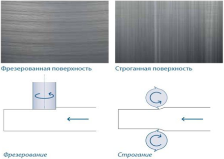 При изготовлении деталей из пластмасс фрезерование является одним из наиболее распространённых видов механической обработки. В связи с тем, что значительная часть этих материалов выпускается в виде листов, плит и блоков, при их обработке широко применяются такие фрезерные операции, как разрезание, выборка пазов различной формы, обработка плоскостей, снятие «уса», фрезерование скосов, кромок, необходимых для последующей стыковки между собой отдельных деталей, листов материала, а также при монтаже различных узловых соединений. На рисунке 2.37 представлена разница способов фрезерования пластмасс.