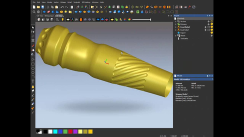 Для создания кода управляющей программы использовался программный ресурс Autodesk ArtCAM. Autodesk (ex Delcam) ArtCAM является ведущим программным обеспечением для проектирования объемных рельефов и предоставляет дизайнерам уникальные возможности по 3D-моделированию и производству высокотехнологичных художественных изделий. Эта самостоятельная завершенная CAD/CAM-система не требует наличия у пользователя инженерных навыков и глубоких познаний в области фрезерной обработки на станках с ЧПУ. Реализованные в программе методы создания и редактирования 3D-рельефов имитируют традиционные средства ручного скульптурного моделирования, тем самым сближая мир искусства с эффективными современными методами производства. CAD/CAM-система ArtCAM используется на тысячах предприятий по всему миру для производства широкого спектра изделий с элементами художественного оформления: монет, ювелирных украшений, вывесок, указателей, упаковки, предметов интерьера, мебели, посуды, музыкальных инструментов, театральных декораций и даже ледяных скульптур. На рисунке 2.38 представлен интерфейс программы Autodesk ArtCAM.