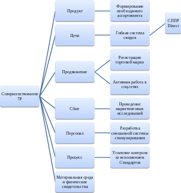 Все мероприятия по совершенствованию маркетинговой деятельности можно представить в виде дерева целей (рисунок 15).