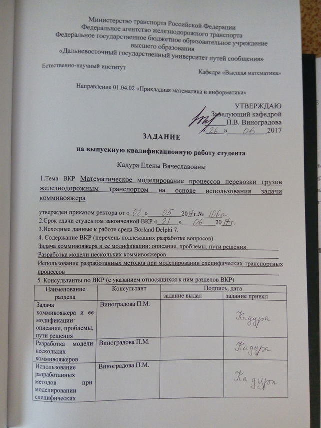 Целью написания данной дипломной работы явилось развитие математической модели для решения практических задач процесса перевозки грузов железнодорожным транспортом на основе использования задачи коммивояжера.