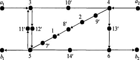 Отметим на середине каждого ребра, по которому нужно пройти, фиктивную вершину, справа от ее номера поставим штрих. В результате получим сеть, изображенную на рисунке 48. В новом графе вершины