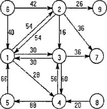 9). Пусть грузоподъемность первого транспортного средства равна 2000, второго - 1000. Рисунке 50, а) представляет иллюстрацию графа идентификации, где не требующие обхода ребра имеют нулевой вес, а требующие - ненулевой. Если в графе идентификации существует пара противоположно направленных дуг (x,y), (у,x), и вес дуги (х,у) равен весу (у,x), то в исходном смешанном графе данная пара интерпретируется как одно неориентированное ребро (x,y). Если же на рис. 50, а) вес дуги (x,y) не равен весу (у,x), считаем, что в исходном графе имеется два ориентированных ребра (x,y) и (у,x) для посещения. Рис. 50, б) иллюстрирует граф количества. Вес каждой его дуги характеризует количество (например, объем или вес) подлежащего сбору груза на данном отрезке пути.