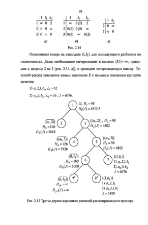 Процесс разбиения на подмножества изображен графически на рисунке 22. Начав просмотр в обратном порядке тех узлов дерева, из которых не производилось ветвление, находим узел 6, имеющий оценку 5000. Продолжаем ветвление из данного узла.