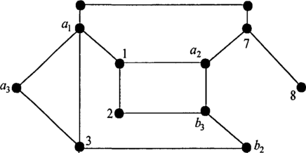 , не являющегося полным, изображенный на рисунке 29. Пусть для простоты веса всех его ребер будут равны единице. Посещения требуют вершины с первой по восьмую. В каждой точке аi находится коммивояжер, завершающий обход в соответствующей точке
