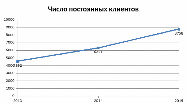 | Число постоянных клиентов | 4 552 | 6 321 | 8 758 |