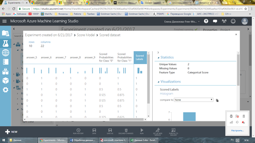 Шаг 3. Полученные в результате выполнения выше описанных шагов данные объединены в один набор данных, который был использован для создания и обучения модели по выбранному алгоритму машинного обучения в среде Microsoft Azure Machine Learning Studio.