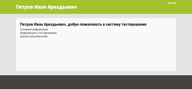 В режиме пользователя доступна личная информация пользователя, информация о пройденных тестированиях, возможность прохождения тестирования в режиме контроля знаний и в режиме обучения, просмотр личной статистики.