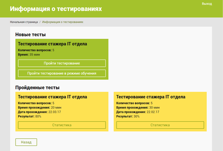 Цветовые акценты присутствуют в результатах тестирования. Результат тестирования выполняется определенным цветом в зависимости от количества набранных баллов (рисунок 61): красным – низкий балл, оранжевым – средний бал, зеленым – высокий балл.