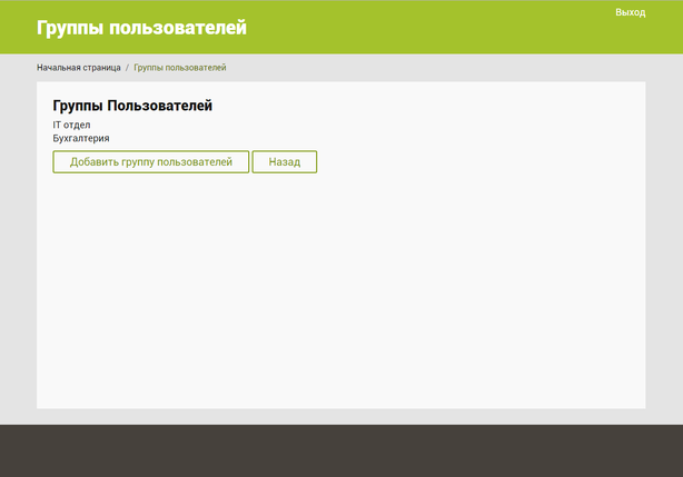При нажатии на кнопку «Добавить группу пользователей» происходит переход в программно-административную часть приложения, где происходит добавление группы пользователей.