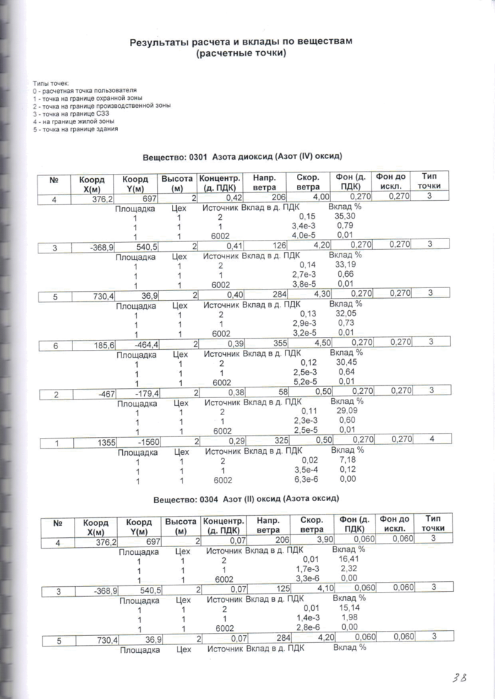 На рисунке 23 наглядно продемонстрированы предельно допустимые выбросы азота диоксида и серы диоксида.