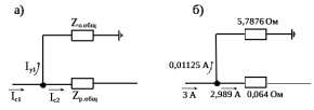 Рисунок 1.11 а) Схема замещения группового заземления с