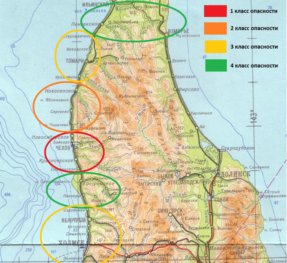 Рисунок 3.1 Классы опасности на участке ж/д Холмск-Томари