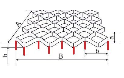 А и В – длина и ширина модуля; а и b – размер ячейки по диагоналям;
