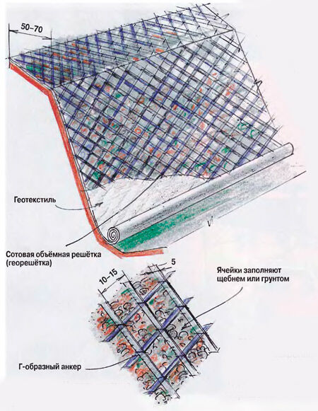 Рисунок 3.5 Георешетка с рекомендуемым креплением