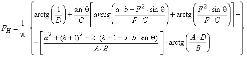 – факторы облученности для вертикальной и горизонтальной площадок, соответственно, определяемые для площадок, расположенных в 90° секторе в направлении наклона пламени, по следующим формулам 2.13 и 2.14: