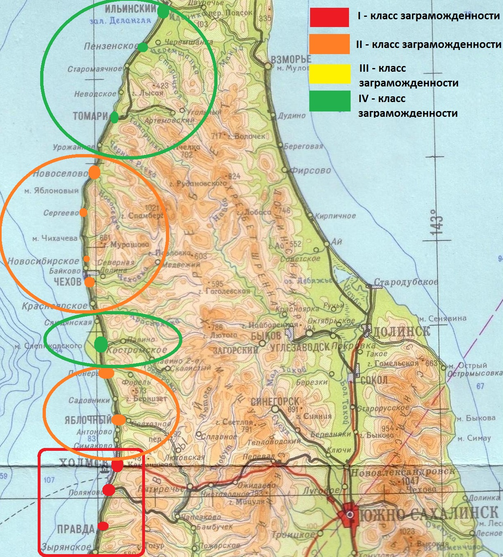 Рисунок 2.1 Класс заграможденности на участке ж/д Холмск-Томари