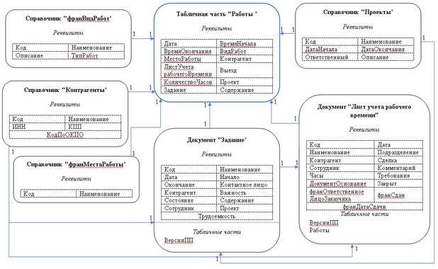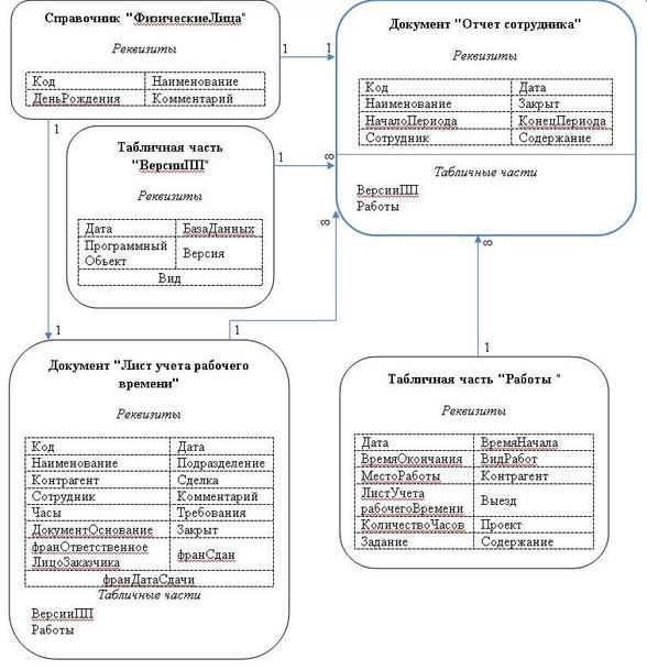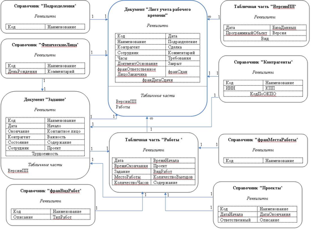 На рисунке 42 приведен фрагмент структуры данных на примере документа «Лист учета рабочего времени».