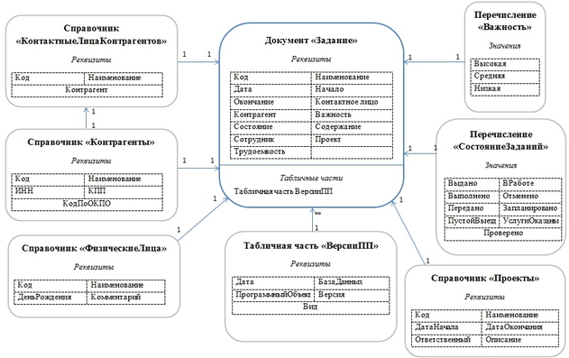 Рисунок 41 – Схема структуры данных. Документ «Задание» и связанные справочники