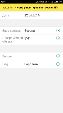 | Основная форма документа | Форма редактирования табличной части «Работы» | Форма редактирования табличной части «Версии ПП» |