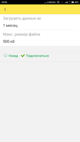 По умолчанию заполняются поля «Загрузить данные за» в значении 1 месяц и «Макс. Размер файла» в значении 500 кб.