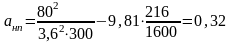 Для определения расчетного значения отношения сил следует рассчитать непогашенное ускорение, возникающего в кривой при проходе вагона. Величина непогашенного ускорения при движении в кривой равна