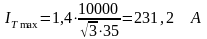 где IТmax – максимального тока в цепи трансформатора, А; SТ – мощность трансформатора, кВА; UН – номинальное напряжение, кВ; КТ – коэффициент перегрузки трансформатора.