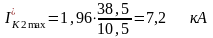 Определяется ток короткого замыкания максимального режима для К2 согласно формуле (2.5):