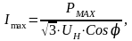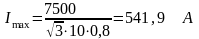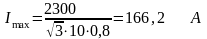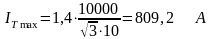 где Imax – максимальный ток в цепи линии, А;Pmax – мощность одной линии 10 кВ, МВА, равна 2,3 МВА;