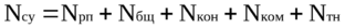 где N1, N2, N3 N4, N5 - мощности, расходуемые на: резание снега, сообщение снегу скорости вращения ротора, преодоление силы трения снега о снежный массив, подъём вырезанного снега из забоя, сообщение снегу относительной скорости движения вдоль лопасти, кВт;