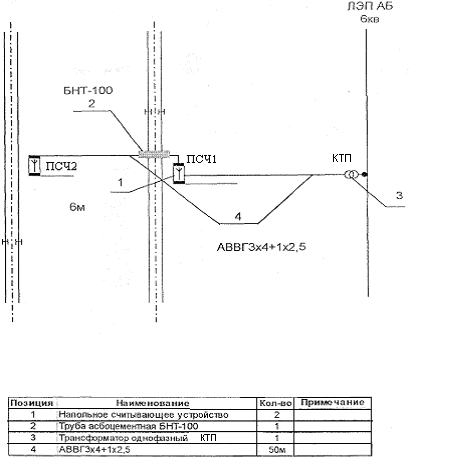 Типовая схема расположения ПСЧ, кабелей связи и электропитания представлена в приложении 7.4