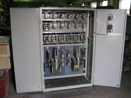 Электроприводы с релейно-контакторной системой управления выполняются, как правило, силовыми контроллерами или пультами при мощностях двигателей до 30 кВт и с панелями управления (магнитными контроллерами) при больших мощностях двигателей. Контакторная аппаратура рейлейно-контакторной системы управления представлена на рисунке 1.2.