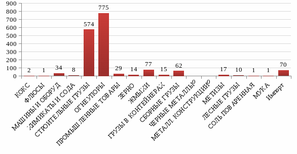За 2015 год принято 3 010 вагонов импортного груза, в среднем за сутки 8 вагонов.