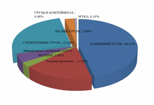 Рисунок 2.4. Погрузка за 12 месяцев 2015 года, по номенклатуре груза