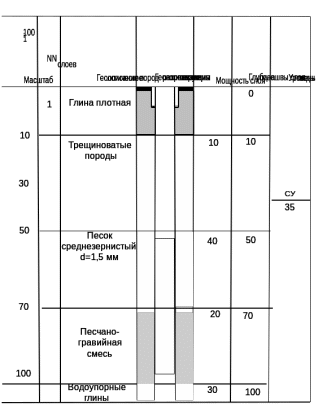 Расчетный расход для водозаборных сооружений водопровода принят равным Qв = 300 м3/сут. В качестве источника водоснабжения приняты подземные безнапорные воды. На рисунке 2 показан гидрогеологический разрез в месте залегания подземных вод.