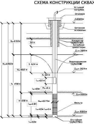 где Zземли – отметка земли в месте расположения скважины, принята по генплану Zземли=69,000;