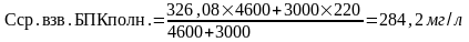 Переводя данные соотношения на БПКполн=284,2 мг/л, получим