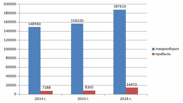 | Товарооборот, тыс. руб. | 148960 | 156220 | 187610 | 7260 | 31390 | 104,9 | 120,1 |