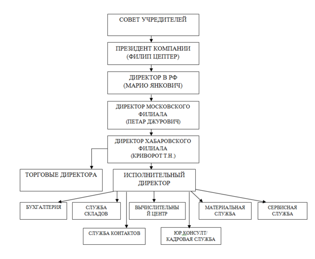 Организационная структура предприятия «Цептер Интернациональ» называется линейной (рисунок 4) [25].
