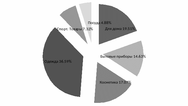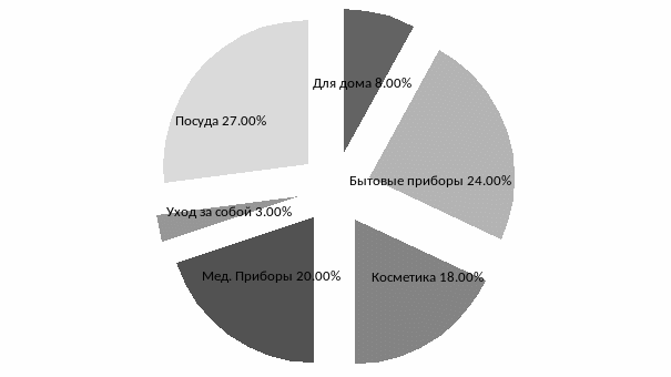Наименьшей привлекательностью для покупателей пользуется товар по уходу за собой (3%), в то время как наибольшим спросом пользуется посуда (рисунок 11).