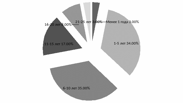 Лояльность клиентов можно легко проследить по рисунку. Большая часть опрошенных респондентов (35%) является клиентом компании 6-10 лет (рисунок 9).