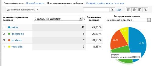 Плагины – если используете на сайте кнопки социальных сетей, то в этом отчете узнаете эффективность их использования (необходимо настроить и использовать функцию _trackSocial для классической версии Google Analytics или social для Universal Analytics). После установки кода Google Analytics можно получать информацию о страницах, на которых происходили социально значимые действия, о социальных сетях, в которые была отправлена информация с сайта и конкретных действиях (например – лайк, поделиться, твитнуть и т.п.).
