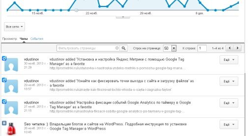 Данные об активности на ресурсе – в официальной справке отчет называется Действия с Data Hub. Вот как описан этот отчет в справке: содержит сведения о том, как пользователи взаимодействуют с вашими материалами и что они пишут о них в социальных сетях. Здесь можно просмотреть URL страниц, которыми недавно делились пользователи, узнать, как они это делали (например, нажимая кнопку Поделиться в Google+) и какие комментарии при этом оставляли. Все эти сведения поступают из Social Data Hub. Социальные сети присылают данные об активности, которые затем обрабатываются и передаются в Google Analytics.