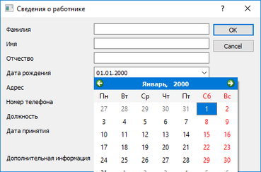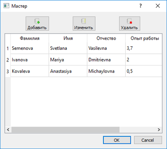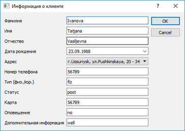 Добавление записи происходит по нажатию на соответствующую кнопку (код представлен в приложении В), после чего вызывается новое диалоговое окно, которое выполняет код, представленный в листинге 8.