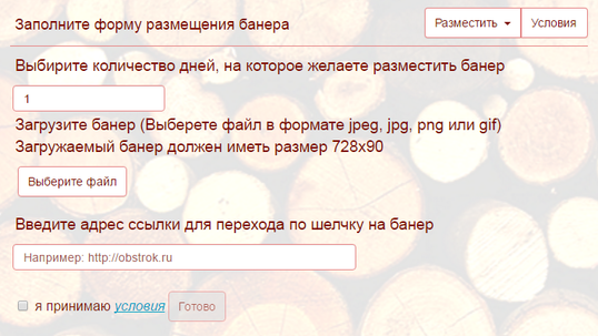 Рисунок 8 – Форма размещения банерной рекламы