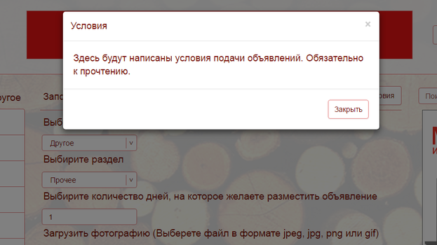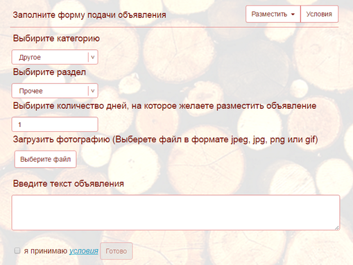 Рисунок 6 – Форма подачи объявления