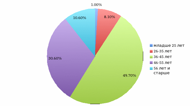 Рисунок 6 – Распределение опрошенных клиентов сети магазинов «ИнтерьерПол ДВ» по возрасту