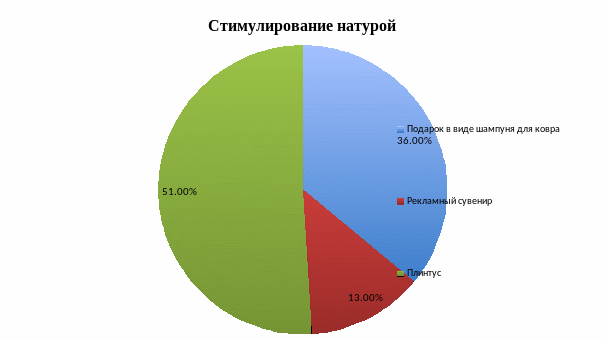 Таким образом, так как большинство покупателей сети магазинов «ИнтерьерПол ДВ», как показало исследование, это мужчины и женщины в возрасте 36-45 лет, руководители компаний или предприниматели, со средним доходом (35001 - 45000 рублей), именно на их предпочтения и следует опираться при разработке программы стимулирования сбыта. Для этой группы потребителей необходимо использовать стимулирование в натуральной и активной формах, а именно подарки за покупку, игры, лотереи и другое.